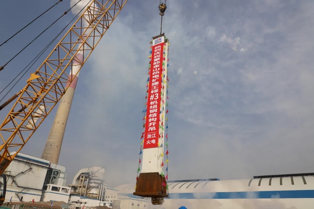 3號(hào)機(jī)組鍋爐首根鋼結(jié)構(gòu)吊裝就位