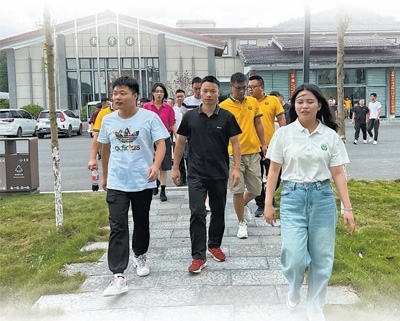 湖北省來(lái)鳳縣舊司鎮(zhèn),班主任(前排右一)帶領(lǐng)學(xué)員參觀全國(guó)鄉(xiāng)村治理示范村新街村。田 根攝(人民視覺)