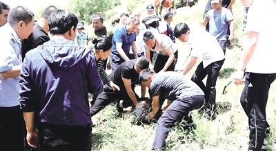 6月6日,甘旗卡鎮(zhèn)森林公安派出所再次接到群眾報(bào)警,稱(chēng)樹(shù)林里又發(fā)現(xiàn)了狗熊,民警到達(dá)現(xiàn)場(chǎng)后依舊未發(fā)現(xiàn)其蹤影。6月11日10時(shí)左右,甘旗卡鎮(zhèn)森林公安派出所再次接到報(bào)警,在甘旗卡工業(yè)園區(qū)北側(cè)發(fā)現(xiàn)狗熊。經(jīng)過(guò)前兩次的斗智斗勇,民警們對(duì)這頭只聞其聲、不見(jiàn)其身且又狡猾異常的熊充滿了期待。當(dāng)民警驅(qū)車(chē)趕到現(xiàn)場(chǎng)時(shí),終于在樹(shù)上發(fā)現(xiàn)了它,是一頭幼年黑熊,屬于國(guó)家二級(jí)保護(hù)動(dòng)物,它正躲在樹(shù)上觀看下面的人群。由于黑熊具有很強(qiáng)的攻擊性,為確保周邊村民安全,民警立即對(duì)現(xiàn)場(chǎng)進(jìn)行管控并向上級(jí)匯報(bào)。11時(shí)左右,經(jīng)上級(jí)相關(guān)部門(mén)協(xié)調(diào),通遼市園林管理局西拉木倫公園工作人員攜帶麻醉槍、麻醉劑、圍網(wǎng)等設(shè)備到達(dá)現(xiàn)場(chǎng)并制定抓捕方案。12時(shí)左右,“熊孩子”在一番掙扎之后被帶離現(xiàn)場(chǎng),暫時(shí)交由通遼市西拉木倫公園飼養(yǎng)照料。(記者 張巧珍)