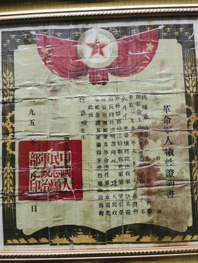 現(xiàn)在,楊智美手里只有家人保存的1954年頒發(fā)的《革命軍人犧牲證明書》和《革命犧牲軍人家屬光榮紀(jì)念證》。通過技術(shù)手段,楊智美發(fā)現(xiàn)其背后的文字記錄著二叔的犧牲地點:朝鮮的周嶺洞??恐@些零星的信息,多年來楊智美一直沒有放棄尋找。