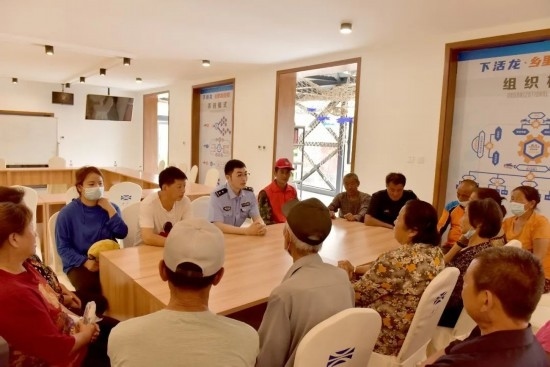 圖為移民管理警察王鐵映組織轄區(qū)群眾開展群防群治工作會議。