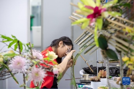 6月6日,選手在進(jìn)行花藝項目比賽。
