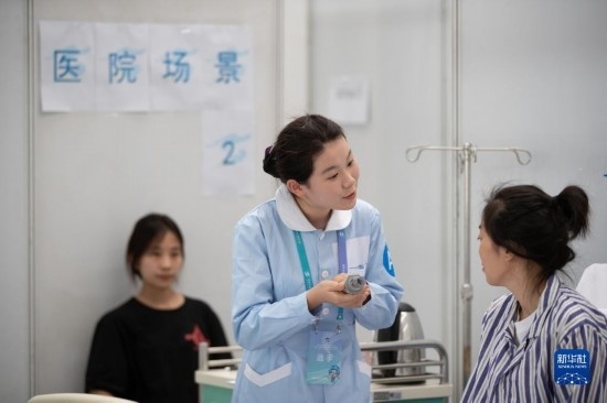 6月6日,選手在進(jìn)行健康和社會照護(hù)項目比賽。