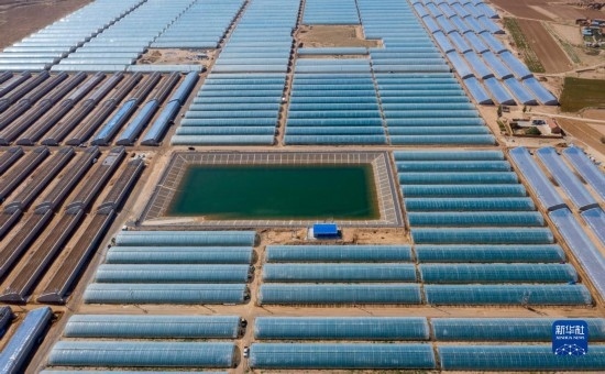 這是9月14日在吳忠市同心縣下馬關(guān)鎮(zhèn)拍攝的設(shè)施溫棚(無人機照片)。