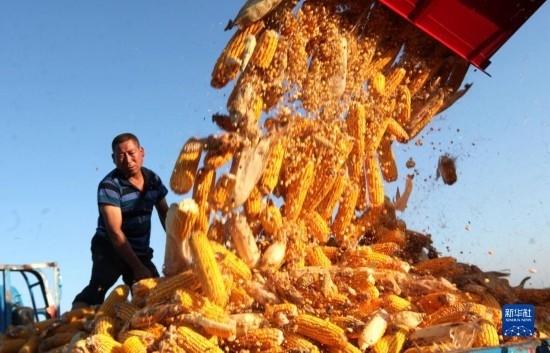 9月14日,村民在河南省商丘市夏邑縣會(huì)亭鎮(zhèn)孫莊村收獲玉米。