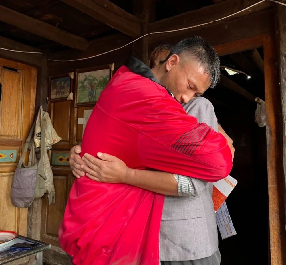 姚勝旺簽收完錄取通知書后喜極而泣。