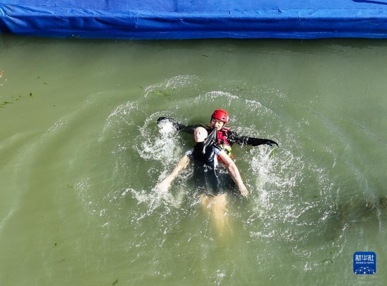 11月8日,消防員在南京玄武湖參加水域救援比賽(無(wú)人機(jī)照片)。