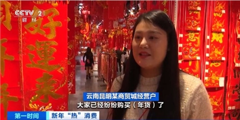 云南昆明某商貿(mào)城經(jīng)營(yíng)戶:從上個(gè)月開(kāi)始,人們就已經(jīng)開(kāi)始購(gòu)買年貨。燈籠、福字、對(duì)聯(lián),還有窗花、擺件都是最熱銷的產(chǎn)品。采購(gòu)高峰期從這個(gè)月開(kāi)始,批發(fā)商已經(jīng)開(kāi)始補(bǔ)貨,一直會(huì)持續(xù)到臘月二十八左右。