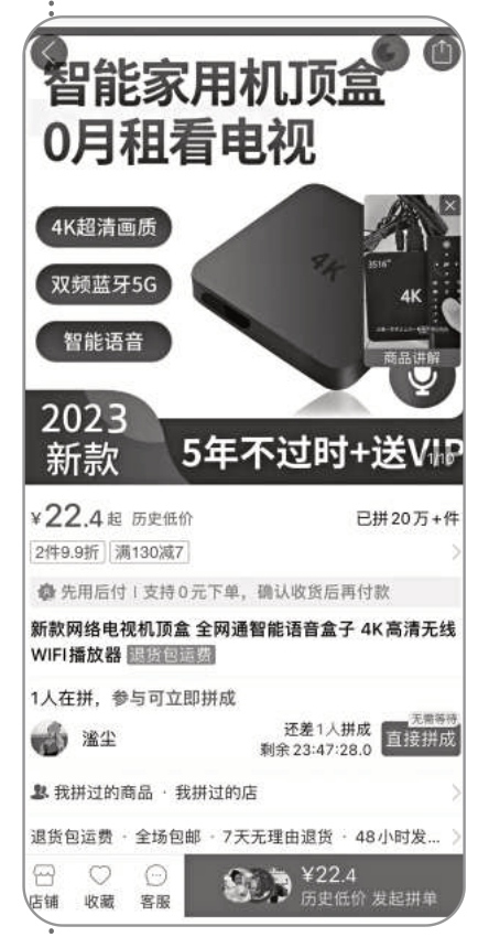 “0月租看電視”“這是一款可以讓你一輩子不用交有線(xiàn)電視費(fèi)的機(jī)頂盒”……在電商平臺(tái)上,一款網(wǎng)絡(luò)電視機(jī)頂盒各型號(hào)版本已售出超過(guò)20萬(wàn)件,在同類(lèi)商品中銷(xiāo)售量最高。記者購(gòu)買(mǎi)了一款售價(jià)47.88元的型號(hào),套裝內(nèi)包括機(jī)頂盒、配件以及永久會(huì)員。