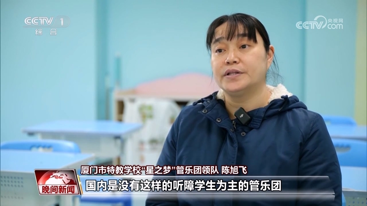 廈門市特教學(xué)?!靶侵畨?mèng)”管樂團(tuán)領(lǐng)隊(duì) 陳旭飛:據(jù)我所知的話,國(guó)內(nèi)是沒有這樣的聽障學(xué)生為主的管樂團(tuán)。