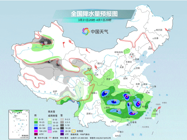 下周,南方天氣的還有一個關鍵詞是降雨。兩輪降雨過程接連來襲,分別會出現(xiàn)在4月1-3日、4-6日,降雨的同時強對流天氣多發(fā)。