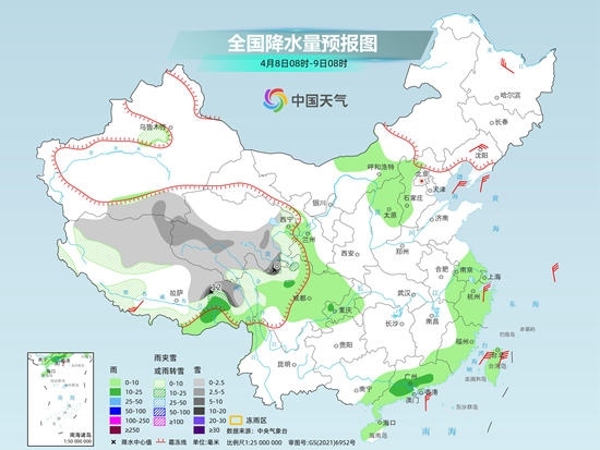 央視網(wǎng)消息:據(jù)中國天氣網(wǎng)消息,預(yù)計今天(4月8日),江南、華南等地降雨將明顯減少減弱,迎來降雨間歇期。但在青藏高原中東部,未來三天仍將出現(xiàn)持續(xù)性雨雪天氣。此外,今明兩天,東北、華北等地在冷空氣以及降水的影響下,氣溫將普遍下降。冷空氣過后,上述地區(qū)氣溫又會快速回升。
