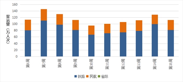 城際總客運量總體較前一周明顯回落至113萬人次,環(huán)比下降13%。