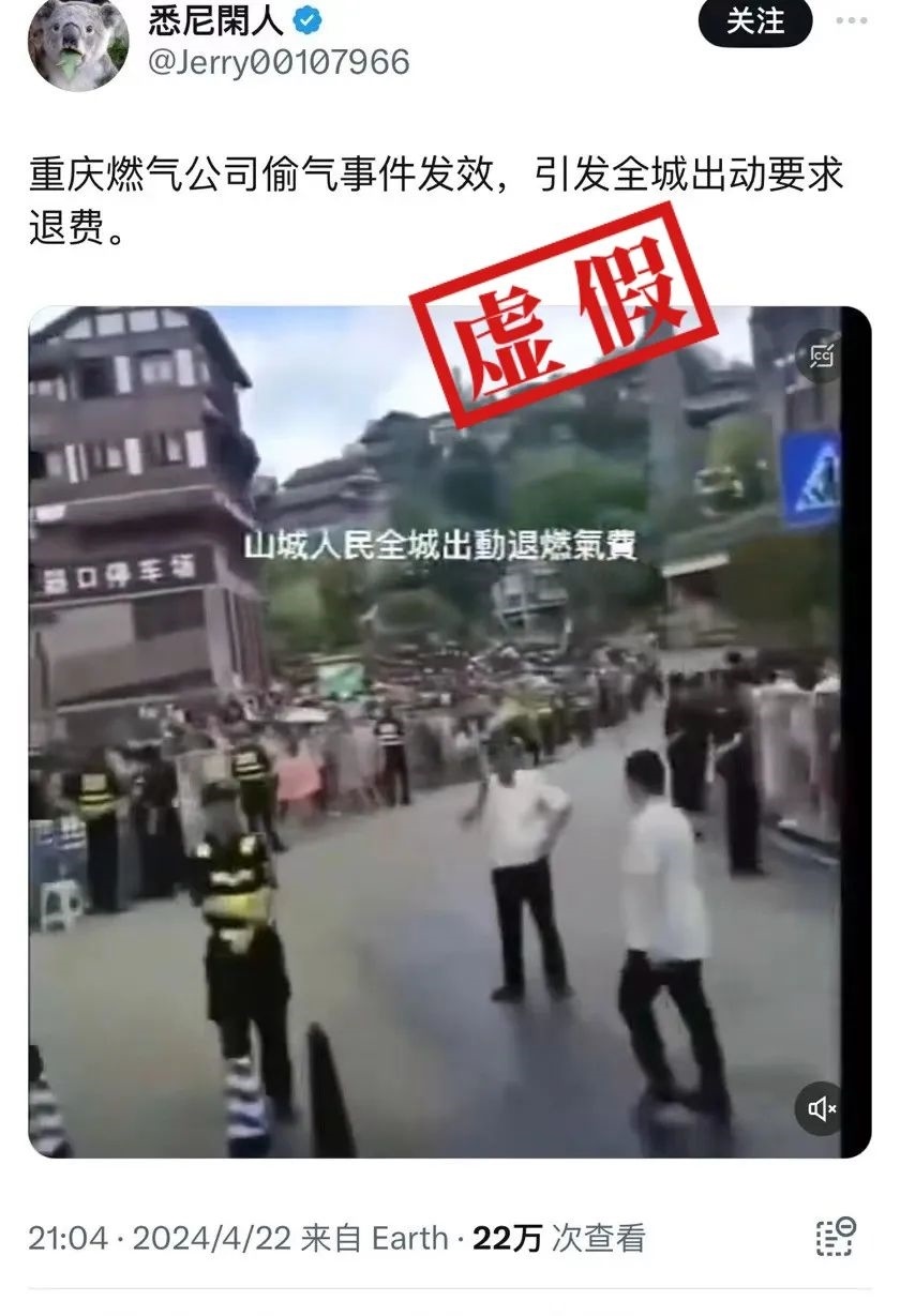 近期,海外社交平臺(tái)有網(wǎng)友上傳一則視頻并聲稱(chēng)畫(huà)面為“重慶全城出動(dòng)要求退燃?xì)赓M(fèi)”,然而該視頻存在諸多疑點(diǎn),似乎并非網(wǎng)傳所述場(chǎng)景。
