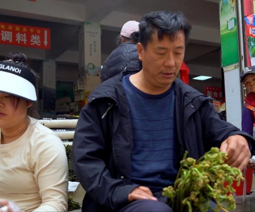 王后國在查看收購蕨菜的品質(zhì)。新華社發(fā) 阮斌 攝于2024年3月29日