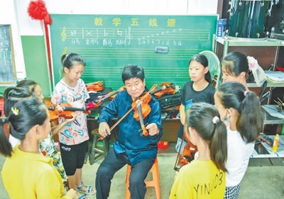 教學(xué)漸漸步入正軌后,張玉立還將支教的范圍擴(kuò)大到其他4個(gè)同樣偏僻的鄉(xiāng)鎮(zhèn)。山路崎嶇,往返山間,張玉立樂此不疲?!啊亚俾曀瓦M(jìn)大山’不僅能夠豐富孩子們的生活,還可以幫助他們走出大山?!睆堄窳⒄f,經(jīng)過一段時(shí)間的教學(xué)以后,自己開始有意識地挑選對小提琴有興趣、有天賦的孩子,成立小提琴班,利用課外時(shí)間進(jìn)行專門訓(xùn)練。