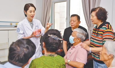 山東省濟(jì)南市第二人民醫(yī)院醫(yī)生為患者和家屬講解人工晶體國家集采政策。
