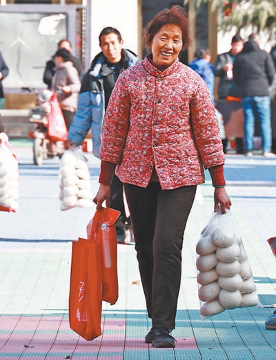 山東省青州市,工作人員將走訪慰問(wèn)困難群眾的愛(ài)心年貨裝車(chē)。