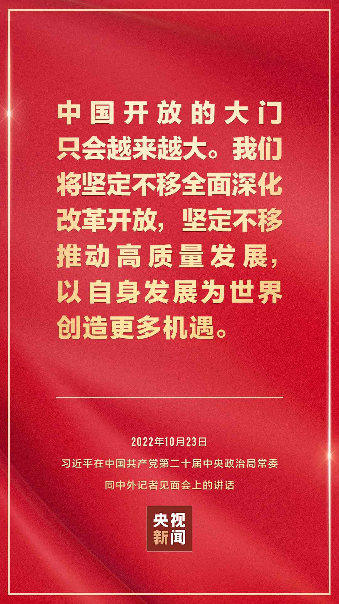 在中國共產(chǎn)黨第二十屆中央委員會第一次全體會議上當選的中共中央總書記習近平和中共中央政治局常委李強、趙樂際、王滬寧、蔡奇、丁薛祥、李希,23日中午在人民大會堂同采訪中共二十大的中外記者見面。習近平發(fā)表重要講話。