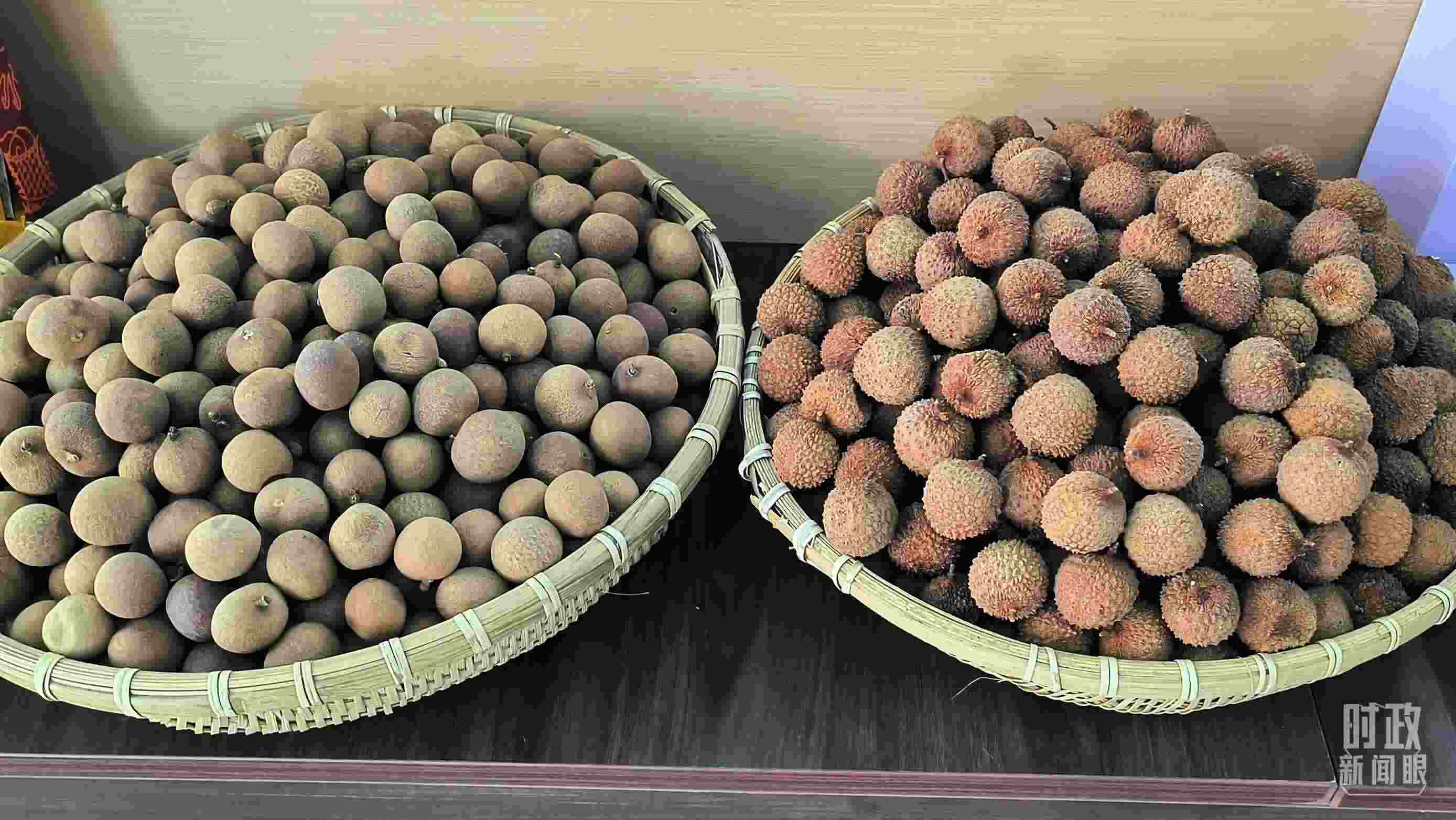 △合作社生產(chǎn)的龍眼干(左)和荔枝干(右)。(總臺央視記者范凱拍攝)