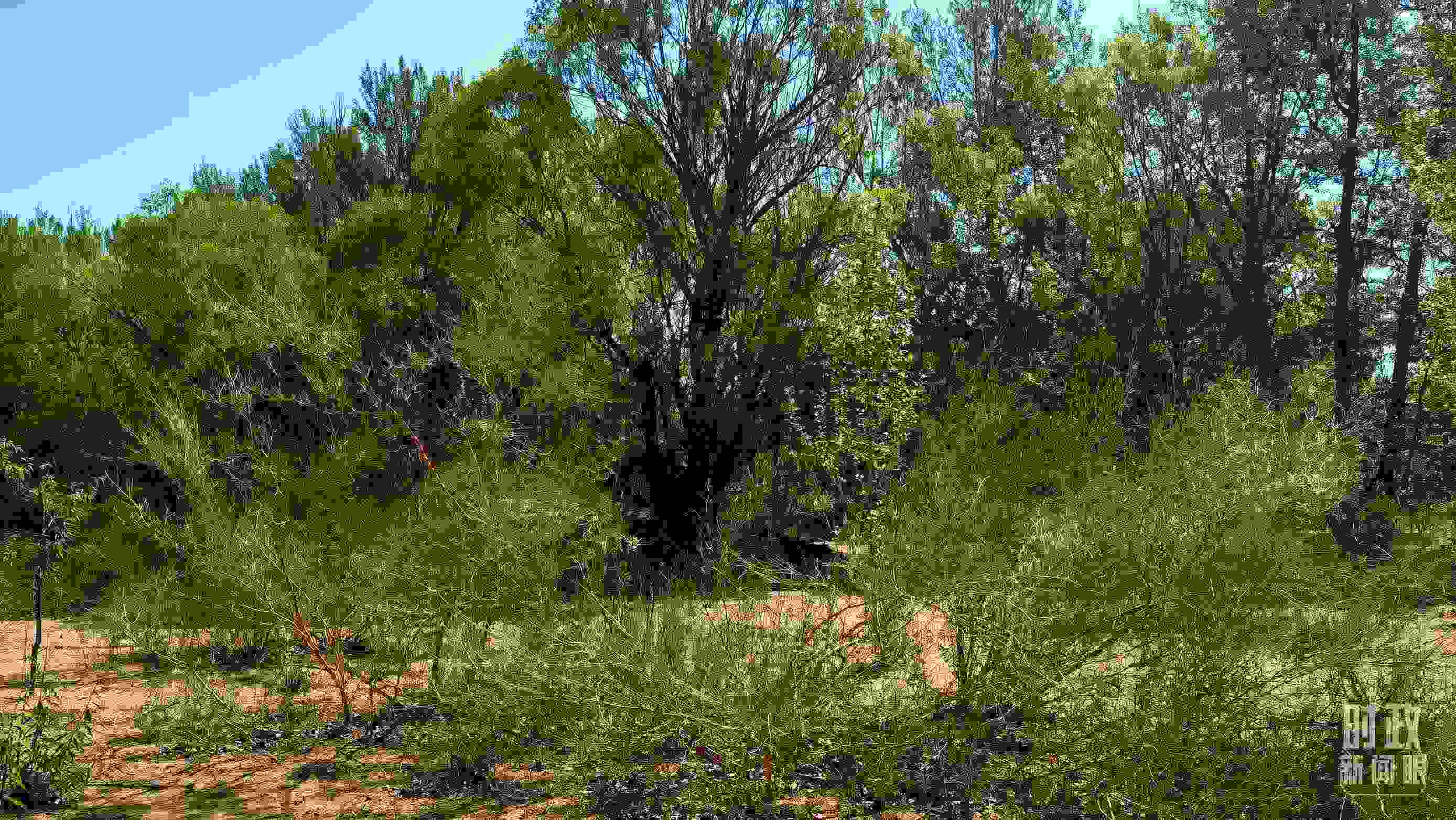 △喬灌草相結(jié)合的植被恢復(fù)模式。(總臺(tái)央視記者石丞拍攝)