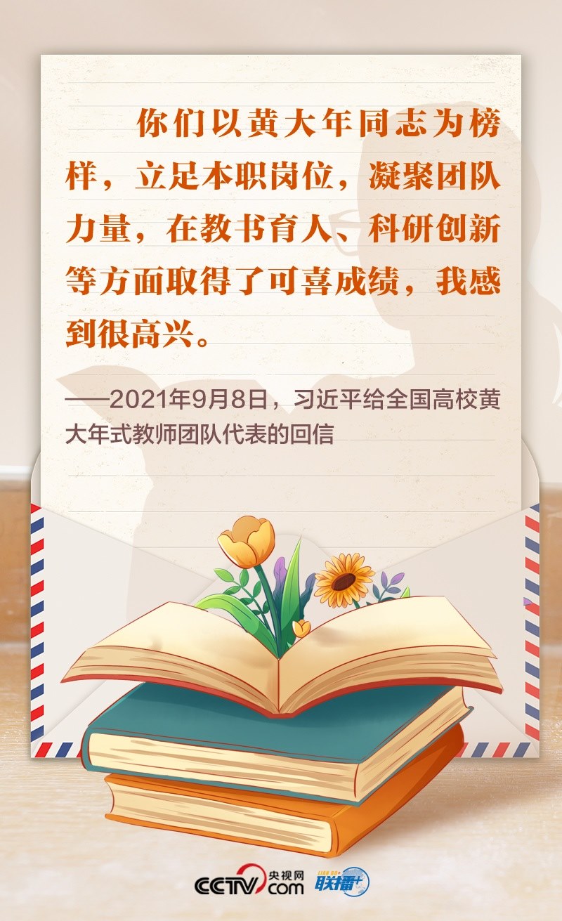 2021年,首批黃大年式教師團隊的代表給總書記寫信,匯報教學、科研等工作情況,表達了堅守教育報國理想、為民族復興貢獻力量的決心。總書記回信肯定了大家的工作成效,勉勵大家繼續(xù)學習弘揚黃大年同志等優(yōu)秀教師的高尚精神,立德修身,潛心治學,開拓創(chuàng)新,真正把為學、為事、為人統(tǒng)一起來,當好學生成長的引路人。