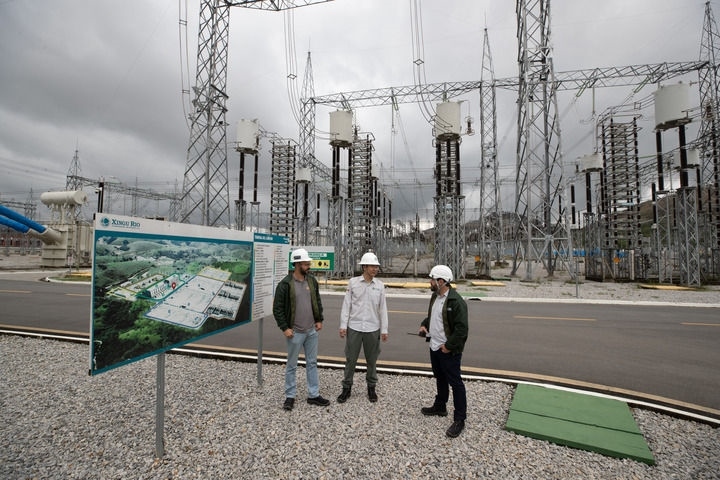 2022年9月30日,在巴西里約熱內盧美麗山特高壓輸電二期項目里約換流站,國網(wǎng)巴控公司換流站運維主管(中)和巴方人員交談。新華社記者 王天聰 攝