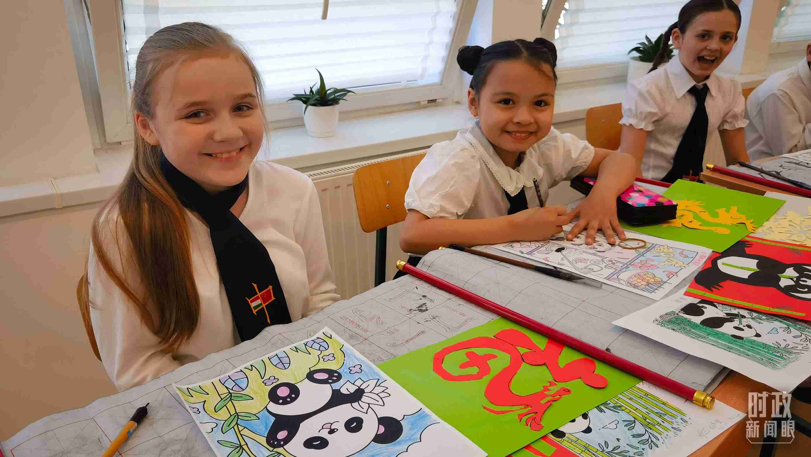 △匈中雙語學校中國傳統(tǒng)文化課堂上的孩子們。(總臺央視記者凌楓拍攝)