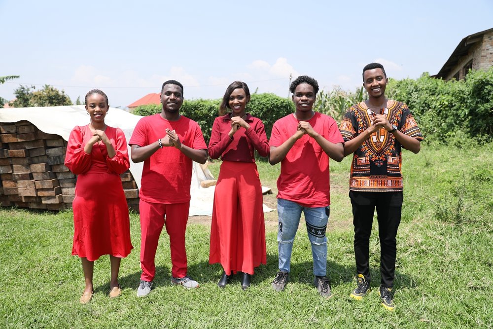 ??2024年2月7日,在盧旺達(dá)南方省卡莫尼地區(qū),盧旺達(dá)青年團(tuán)隊(duì)成員向鏡頭前觀(guān)眾送上新春祝福。新華社發(fā)(黃萬(wàn)晴 攝)