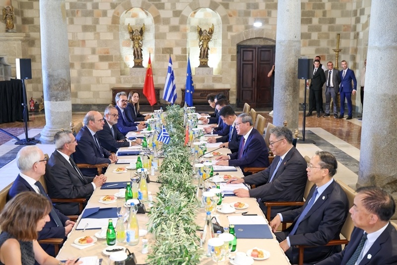 李強指出,中方愿同希方拉緊合作紐帶,更好發(fā)揮互補優(yōu)勢,高質(zhì)量推進比雷埃夫斯港總規(guī)劃落地,推動兩國貿(mào)易更加優(yōu)化平衡發(fā)展,加強在清潔能源、輸變電、人工智能等領(lǐng)域合作,培育更多經(jīng)濟新增長點。中方支持和鼓勵更多有實力的中國企業(yè)根據(jù)市場原則,積極推進對希臘投資。雙方要加強文明互鑒,密切旅游等人文交流,增進兩國人民友好。中歐之間有著廣泛的共同利益。當(dāng)前全球單邊主義、保護主義愈演愈烈,中歐應(yīng)共同發(fā)出倡導(dǎo)多邊主義和自由貿(mào)易的積極聲音,攜手維護經(jīng)濟全球化和國際經(jīng)貿(mào)秩序。希望希臘繼續(xù)為推進中歐關(guān)系發(fā)展發(fā)揮建設(shè)性作用。