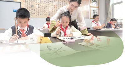 安徽合肥市小學生正在書寫家風家訓。趙 明攝(影像中國)