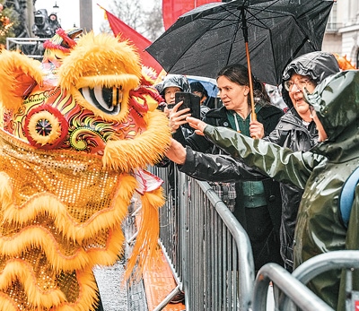 新年伊始,英國首都倫敦下起了雨。盡管天公不作美,人們迎接新年的熱情不減,第39屆倫敦新年巡游如期進(jìn)行,這也是英國當(dāng)?shù)匦履陸c典的重要組成部分。在來自世界各地的花車表演中,倫敦華埠商會方隊(duì)作為唯一的華人方隊(duì),舞龍舞獅、花車表演風(fēng)采十足。