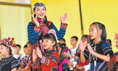 創(chuàng)業(yè)之初,我?guī)е嚼锏暮⒆觽儗W(xué)唱哈尼古歌,學(xué)跳樂(lè)作舞。有人質(zhì)疑:“教這些老掉牙的東西,能有什么前途?”但我覺(jué)得,民族文化瑰寶蘊(yùn)含著獨(dú)特的魅力,只是尚未被更多人看見(jiàn)。教學(xué)中,我自己也經(jīng)常向民間藝人請(qǐng)教,提煉非遺歌舞中動(dòng)作的精髓、代表性的音樂(lè)段落,再加以創(chuàng)新發(fā)展。