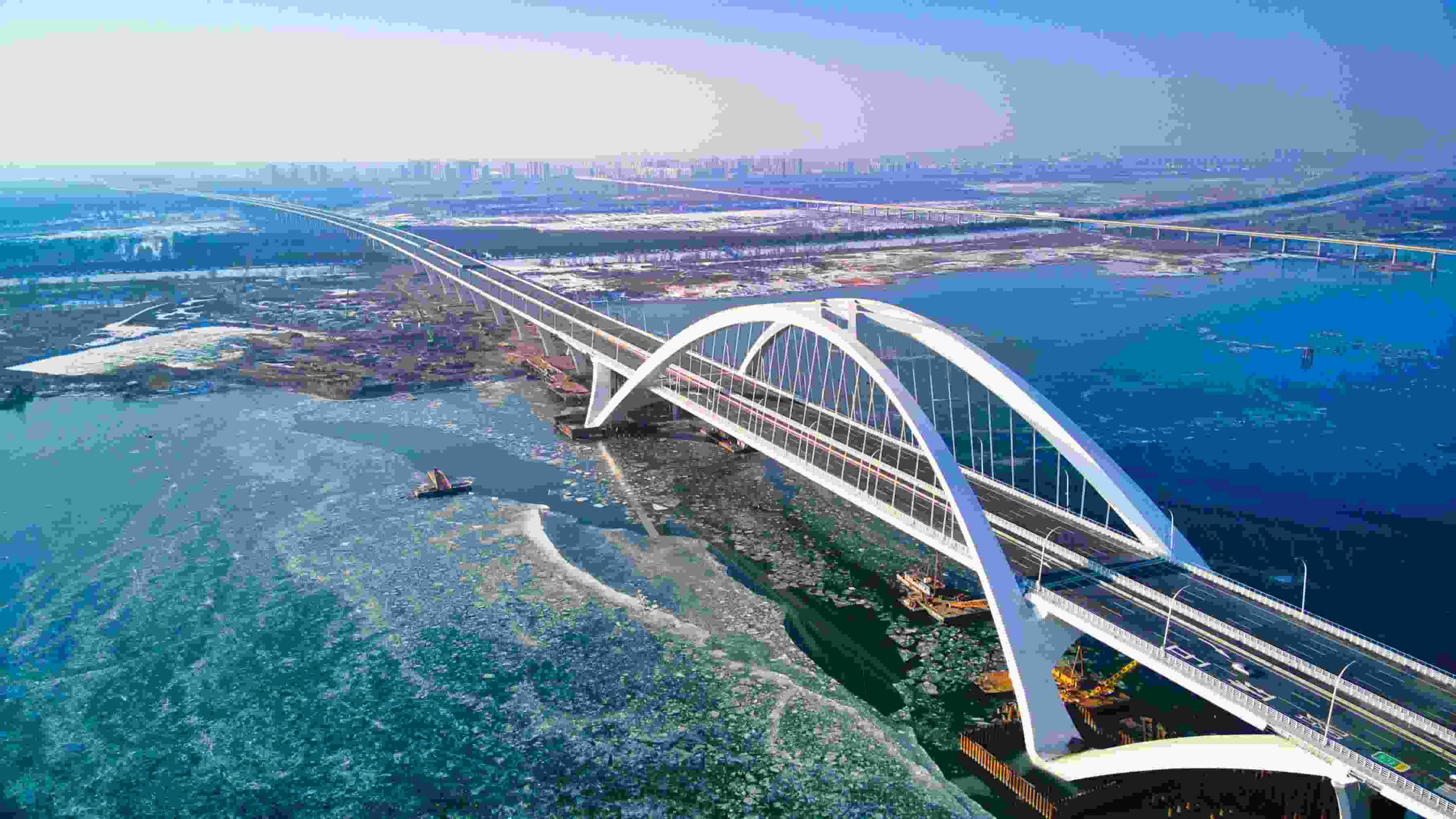 作為京雄高速全線重難點(diǎn)和控制性工程,京雄大橋已于2023年6月17日實(shí)現(xiàn)合龍,刷新北京橋梁單跨跨度紀(jì)錄。橋梁采用飛燕式拱橋結(jié)構(gòu),拱頂以“中國結(jié)”造型的風(fēng)撐連接,寓意北京與雄安兩座城市緊密聯(lián)系、協(xié)同發(fā)展。