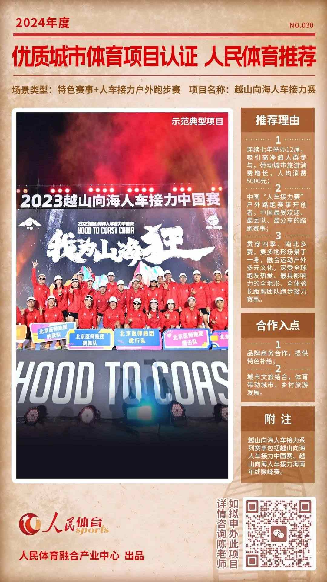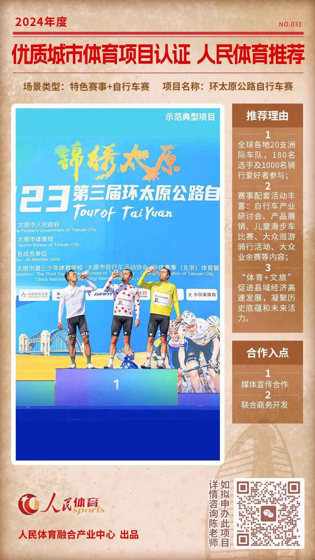 人民體育發(fā)起的“優(yōu)質(zhì)體育賽事及活動(dòng)認(rèn)證推薦計(jì)劃”,于2024年01月推出第四批共9個(gè)推薦項(xiàng)目,本期推薦首次推出單個(gè)項(xiàng)目深度介紹欄目。同時(shí),第五期推薦項(xiàng)目征集開啟中。
