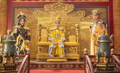 12月8日,游客在官渡古鎮(zhèn)“古渡梨園”體驗滇劇表演。