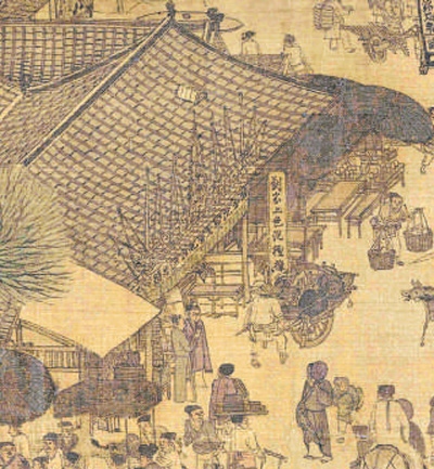 以“汴京富麗天下無”來概括北宋東京的繁榮與富庶,并不過分?!稏|京夢華錄》曾記載,在東京城的酒店中二人對坐飲酒,就需要“注碗一副、盤盞兩副、果菜碟各五片、水菜碗三五只”。而東京城中,匯聚了百工精巧,無所不有。這些在大相國寺中有集中的體現(xiàn)。大相國寺是東京城內(nèi)著名的佛教大寺,又是東京城內(nèi)“萬姓交易”的場所,每月開放8次,各種日常用品、金銀首飾以至?xí)?、文房筆墨,都可以在寺中購得。李清照在《金石錄·后序》中曾回憶北宋末年她和趙明誠從大相國寺購買碑文后,回到家中展玩對讀??梢?,以大相國寺為中心形成了一個繁華的商業(yè)區(qū),成為官民士庶出入頻繁的活動中心,拜佛上香、觀光娛樂、廟會集市、時令游賞,無所不有。