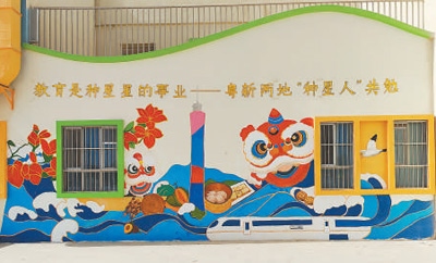 清晨,太陽(yáng)剛剛升起,新疆伽師縣西克爾庫(kù)勒鎮(zhèn)中心幼兒園內(nèi),一群背著畫板、提著顏料箱的年輕人已開始忙碌。剛翻新的幼兒園墻面成為他們的畫布,大海與雪山、醒獅與烤馕、廣州塔與喀什高臺(tái)民居等粵新兩地文化元素在此相遇。百人共繪的畫卷(局部見(jiàn)圖),不僅點(diǎn)亮邊疆孩子們的藝術(shù)星空,也滋潤(rùn)著共創(chuàng)者的心靈。