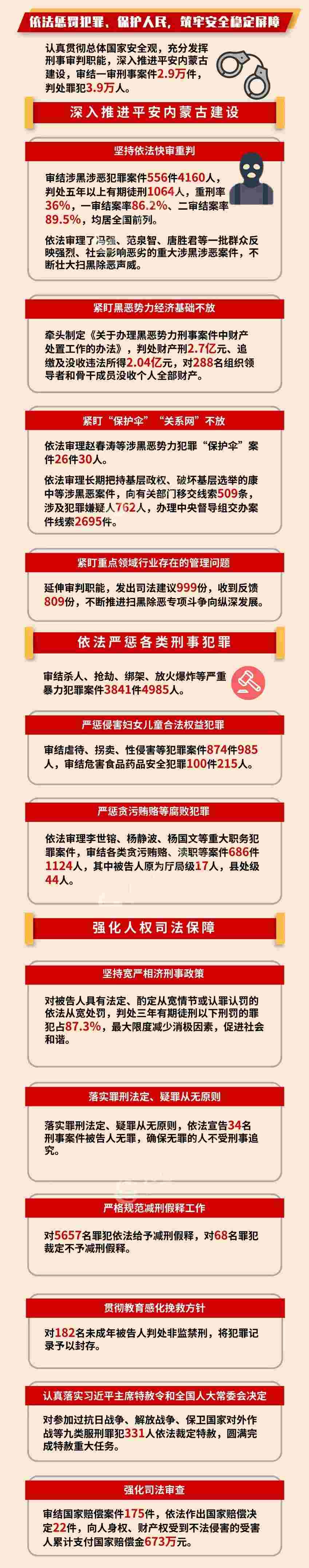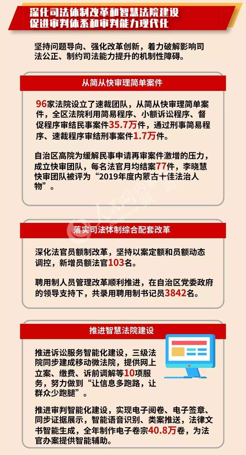 會(huì)上,內(nèi)蒙古自治區(qū)高級(jí)人民法院院長(zhǎng)楊宗仁作《內(nèi)蒙古自治區(qū)高級(jí)人民法院工作報(bào)告》,內(nèi)蒙古自治區(qū)人民檢察院檢察長(zhǎng)李琪林作《內(nèi)蒙古自治區(qū)人民檢察院工作報(bào)告》。“兩院”工作報(bào)告都有哪些看點(diǎn)?今年兩會(huì),小編繼續(xù)帶您看圖說(shuō)兩會(huì)。